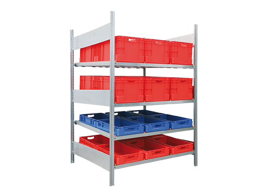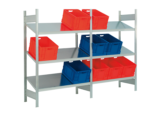 Vielfältige Einsatzmöglichkeiten für unterschiedlichstes Lagergut: Sichtlagerkästen, Euronorm-Lagerbehälter oder andere Gebinde