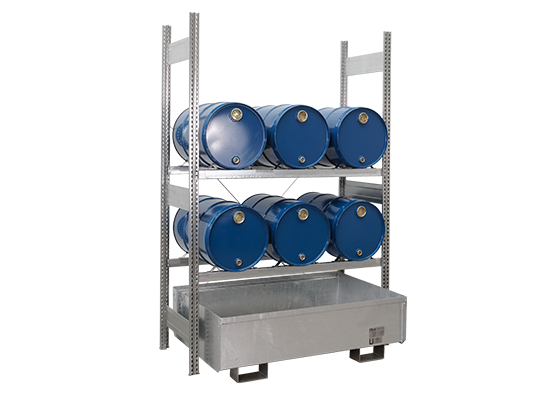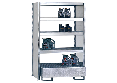 BERT Umweltregale eignen sich auch für die Lagerung von wassergefährdenden Flüssigkeiten der WGK 1–3.