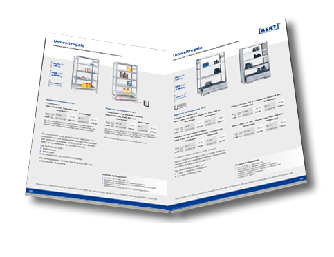 Für die umwelt- und sachgerechte Lagerung von wassergefährdenden Flüssigkeiten und von Gefahrstoffen in Kleingebinden ist das System BERT als Umweltregal die sichere Lösung. Die Auffangwannen erfüllen die Vorgaben der bauaufsichtlichen Zulassung mit Übereinstimmungserklärung.
